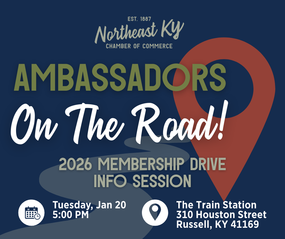 DESCRIPTION:Interested in getting more involved with the Northeast Kentucky Chamber of Commerce? Our 2026 Membership Drive is the perfect place to start. Join us for a short Ambassador Info Session to learn more about our Chamber Ambassador program\, what ambassadors do\, and how you can help support and connect our local business community throughout the 2026 Membership Drive.